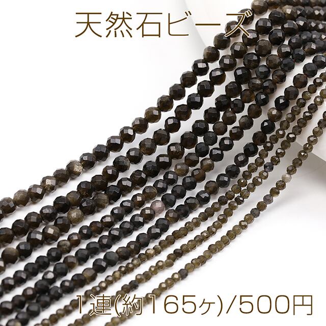 N3052-2mm 天然石ビーズ 連売り ゴールドオブシディアン ラウンドカット 通し穴あり 2mm 1連(約165ヶ) | Beads&parts BASE2号店