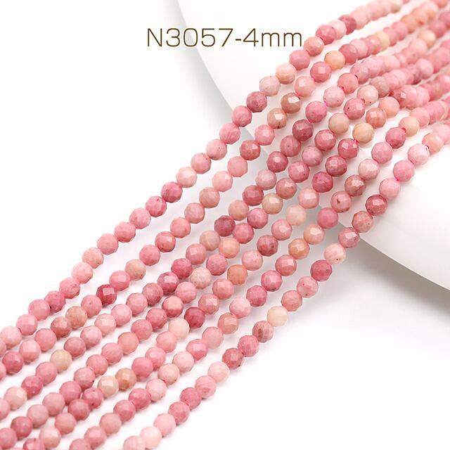 N3057-4mm 天然石ビーズ 連売り ピンクオパール ラウンドカット 通し穴あり 4mm 1連(約85ヶ) | Beads&parts BASE2号店