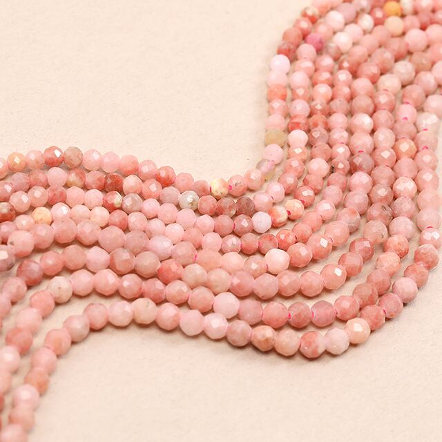 N3058-4mm 天然石ビーズ 連売り ピンクアベンチュリン ラウンドカット 通し穴あり 4mm 1連(約100ヶ) | Beads&parts BASE2号店