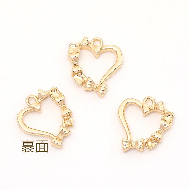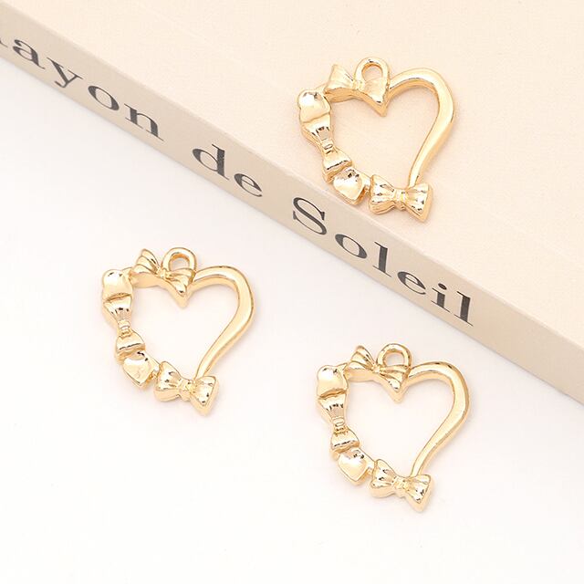 M12754 メタルチャーム ハート型 リボン カン付き ゴールド 16×18mm(8ヶ) | Beads&parts BASE2号店