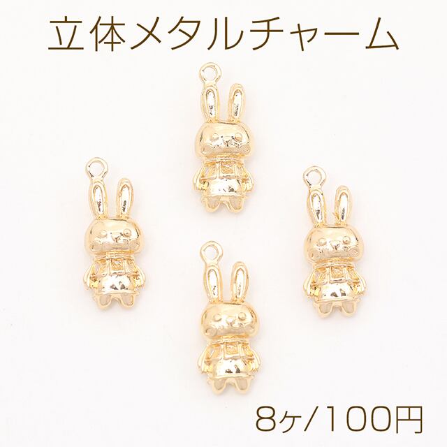 M12762 立体メタルチャーム うさぎ ウサギ カン付き ゴールド 8×19mm(8ヶ) | Beads&parts BASE2号店