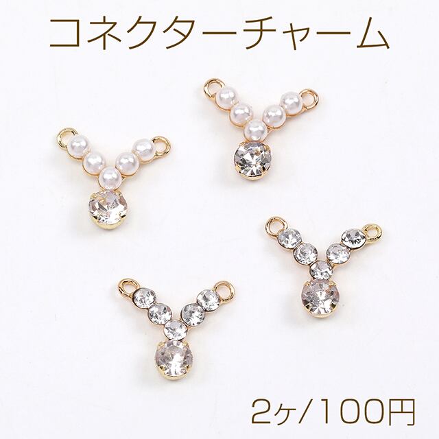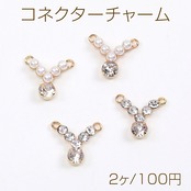 M12816 コネクターチャーム パール付き ラインストーン付き 2カン付き ゴールド 11×12mm | Beads&parts BASE2号店