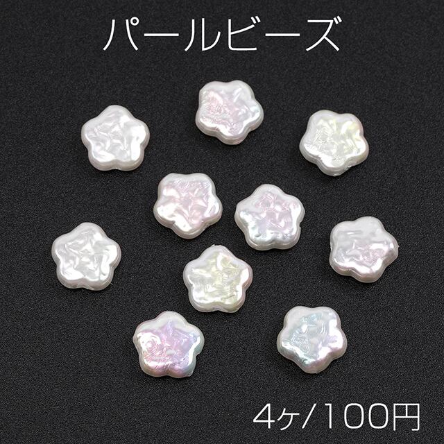 A4920 パールビーズ バロック調パールビーズ ABS樹脂製 オーロラカラー加工ホワイト 立体フラワー型 縦穴 11mm(4ヶ)