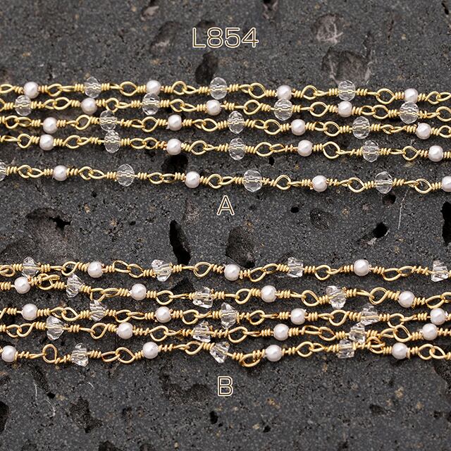 L854 高品質ハンドメードチェーン パール&ガラスビーズチェーン 18Kゴールドメッキ 色落ちしにくい(10cm) | Beads&parts BASE2号店