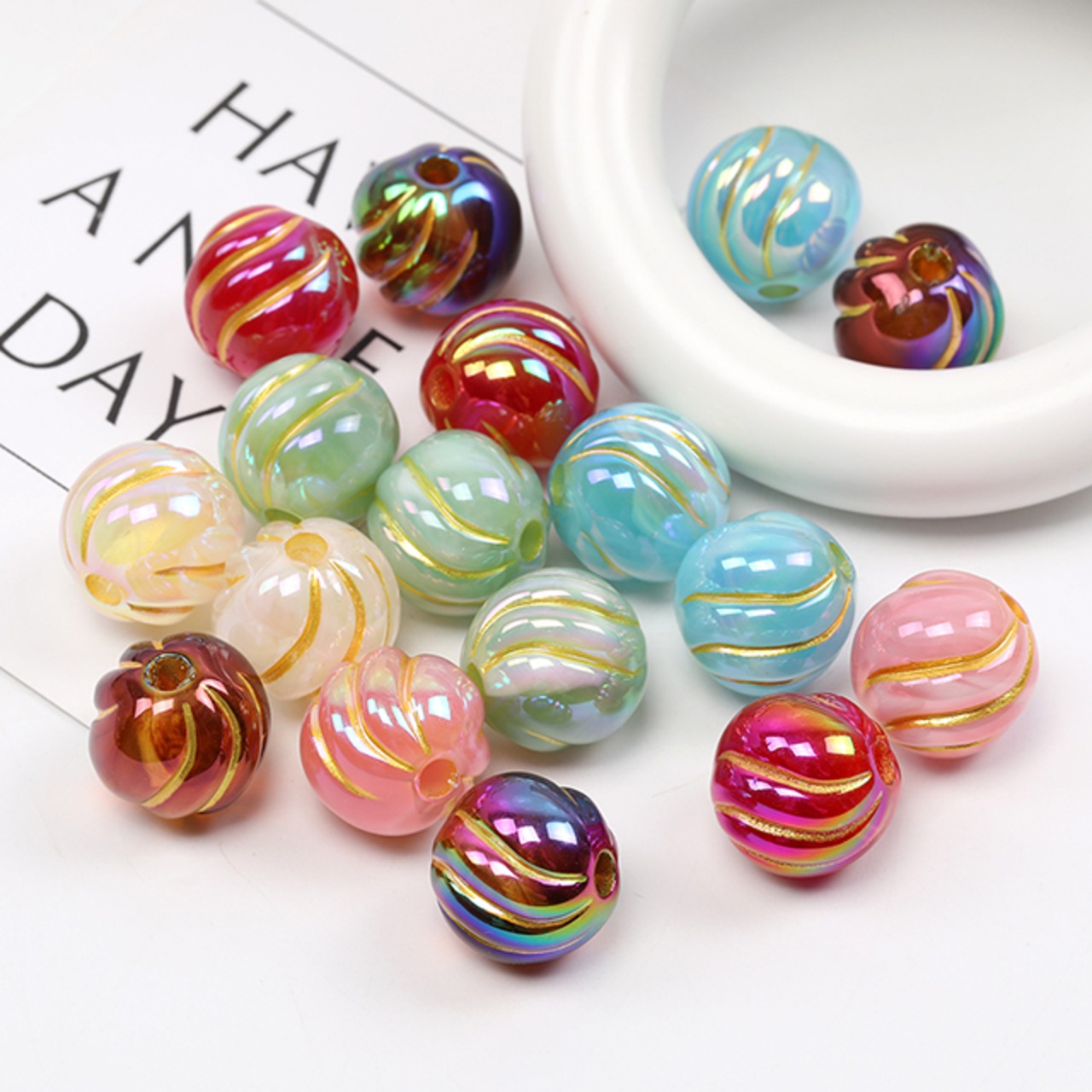 A4954 アクリルビーズ 筋入り丸玉 ミックスカラー 15mm(10ヶ)