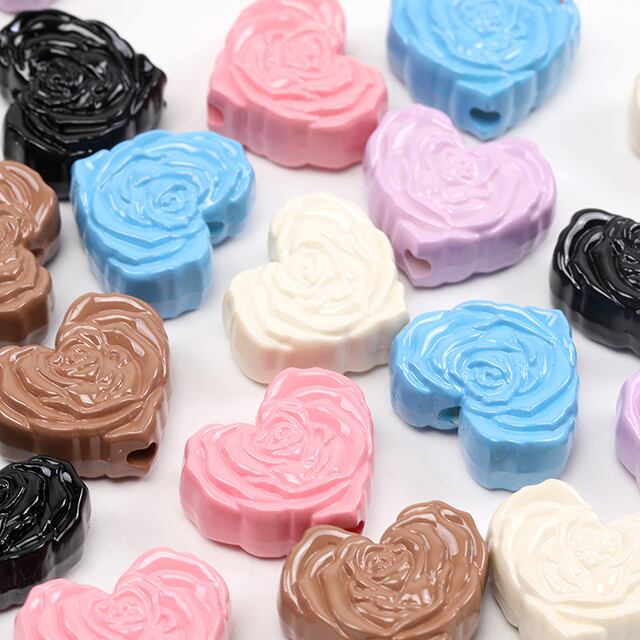 A4959 アクリルビーズ ハート型 バラ ミックスカラー 19×23mm(10ヶ)