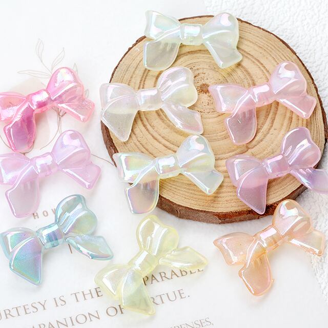 A5045 アクリルビーズ リボン メッキ加工 ミックスカラー 24×33mm(10ヶ) | Beads&parts BASE2号店