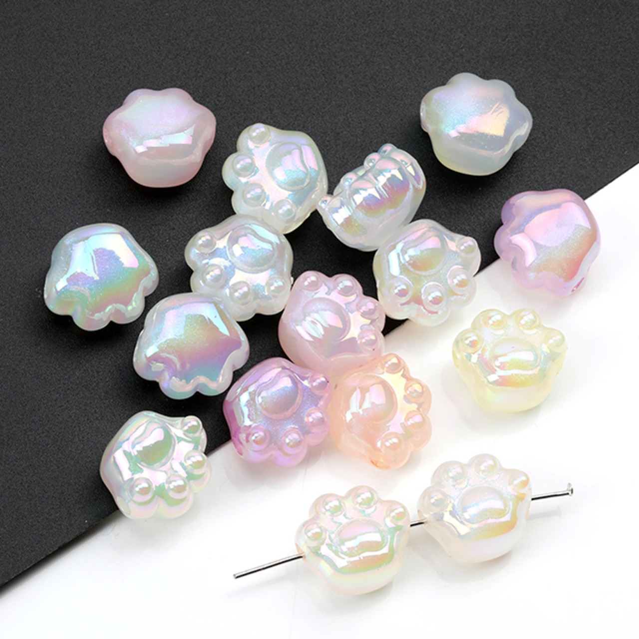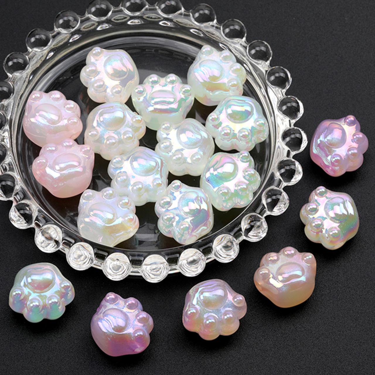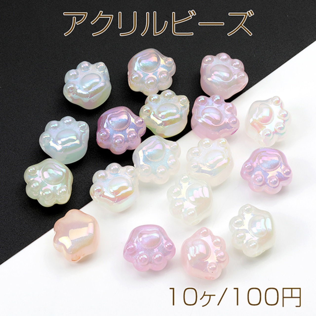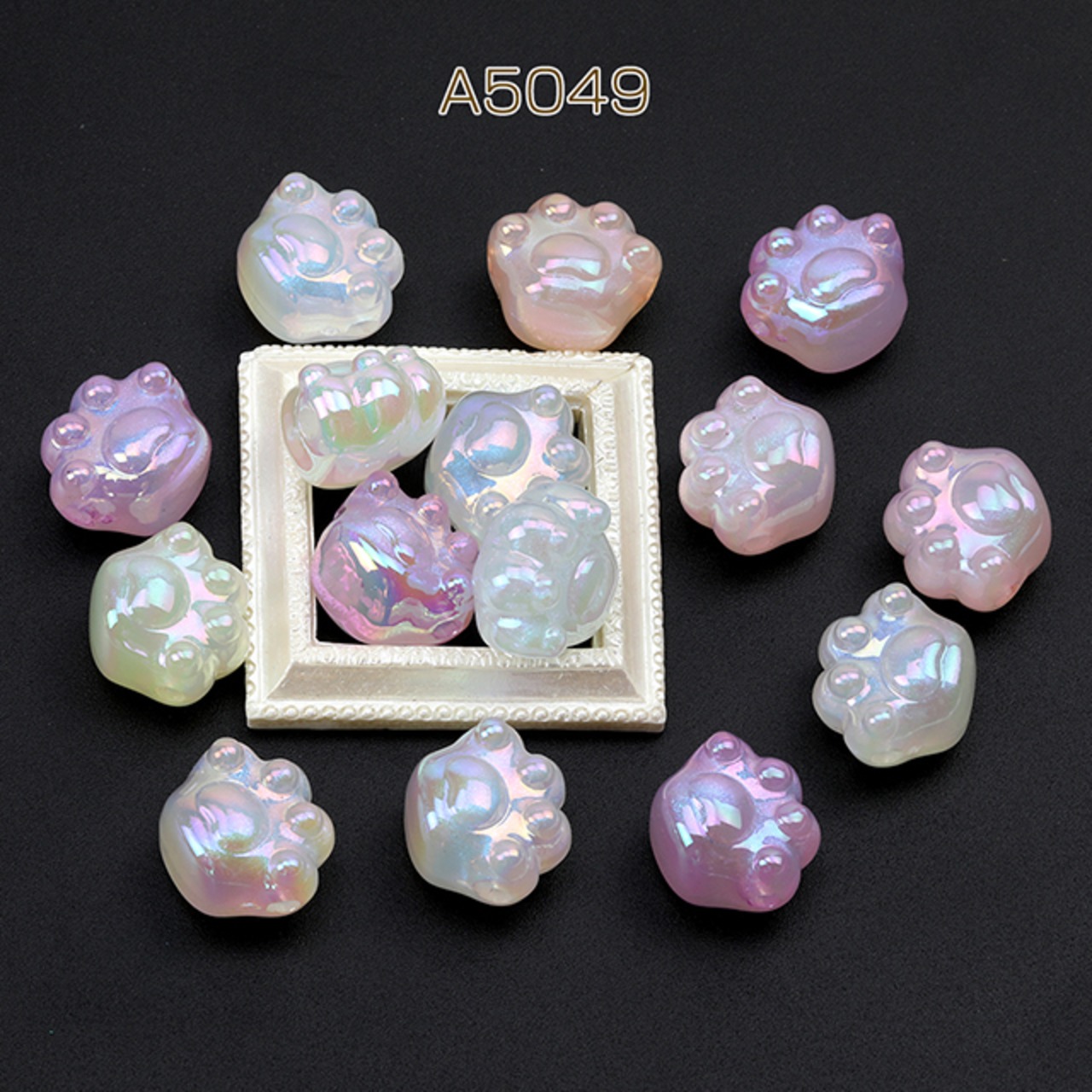 A5049 アクリルビーズ 猫の肉球 メッキ加工 ミックスカラー 16×18mm(10ヶ)