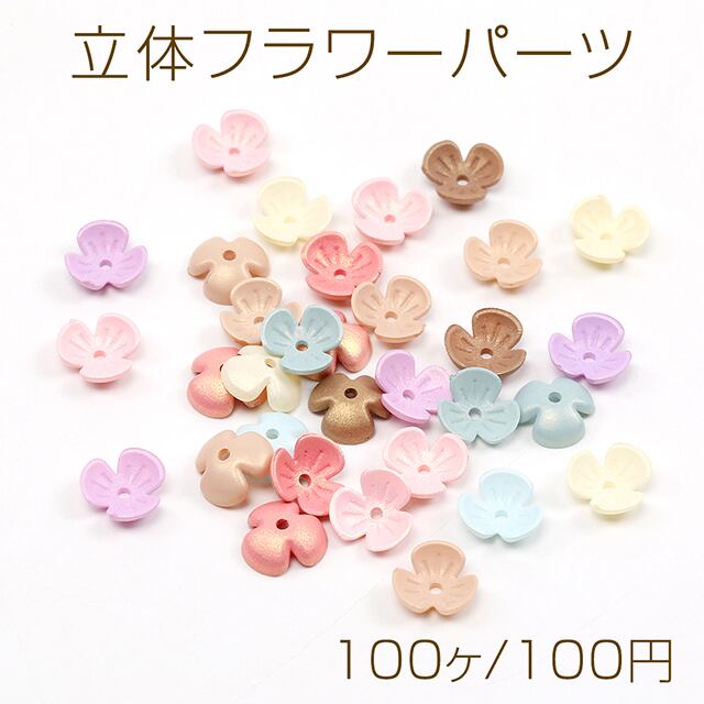 A5062 立体フラワーパーツ アクリルビーズキャップ フラワーチャーム 花座 小花パーツ 三弁花 中心穴あり ミックスカラー 9mm(100ヶ) | Beads&parts BASE2号店