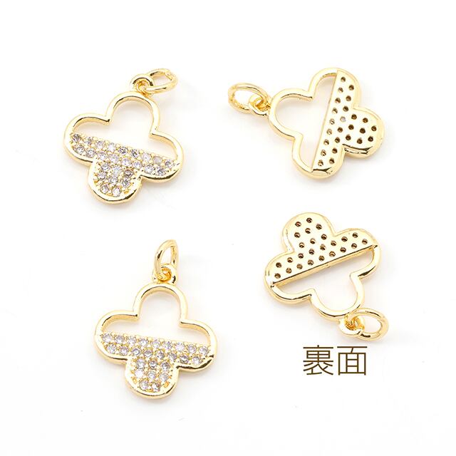 M12903 高品質ジルコニアチャーム クローバー ゴールド 12×13mm(1ヶ) | Beads&parts BASE2号店