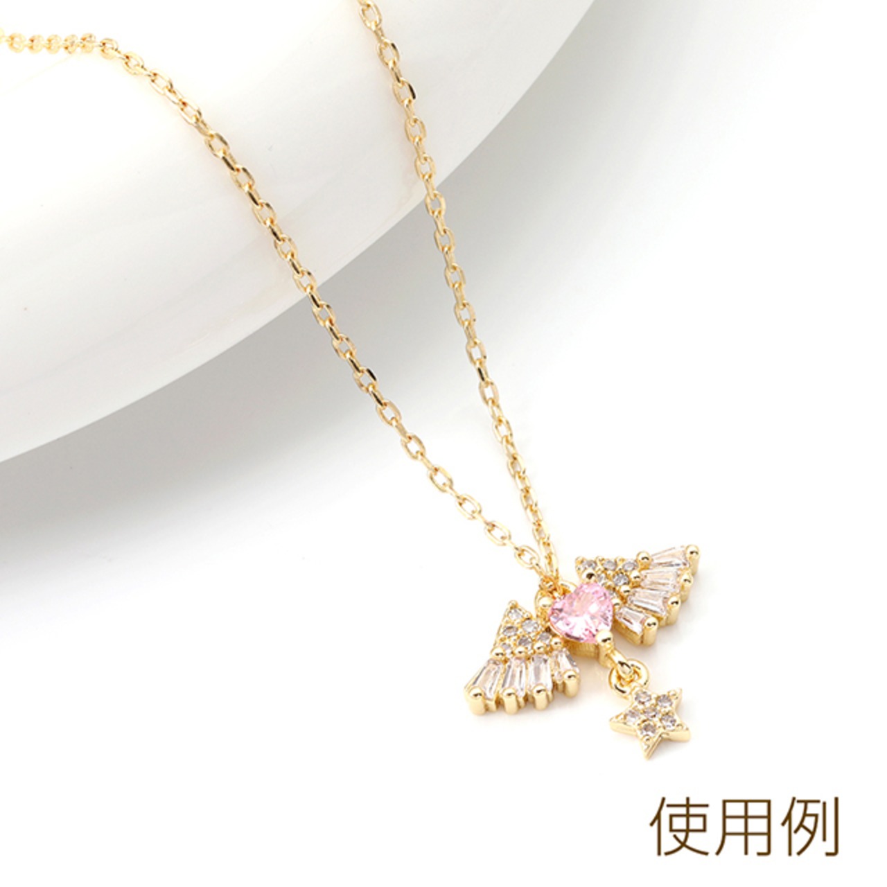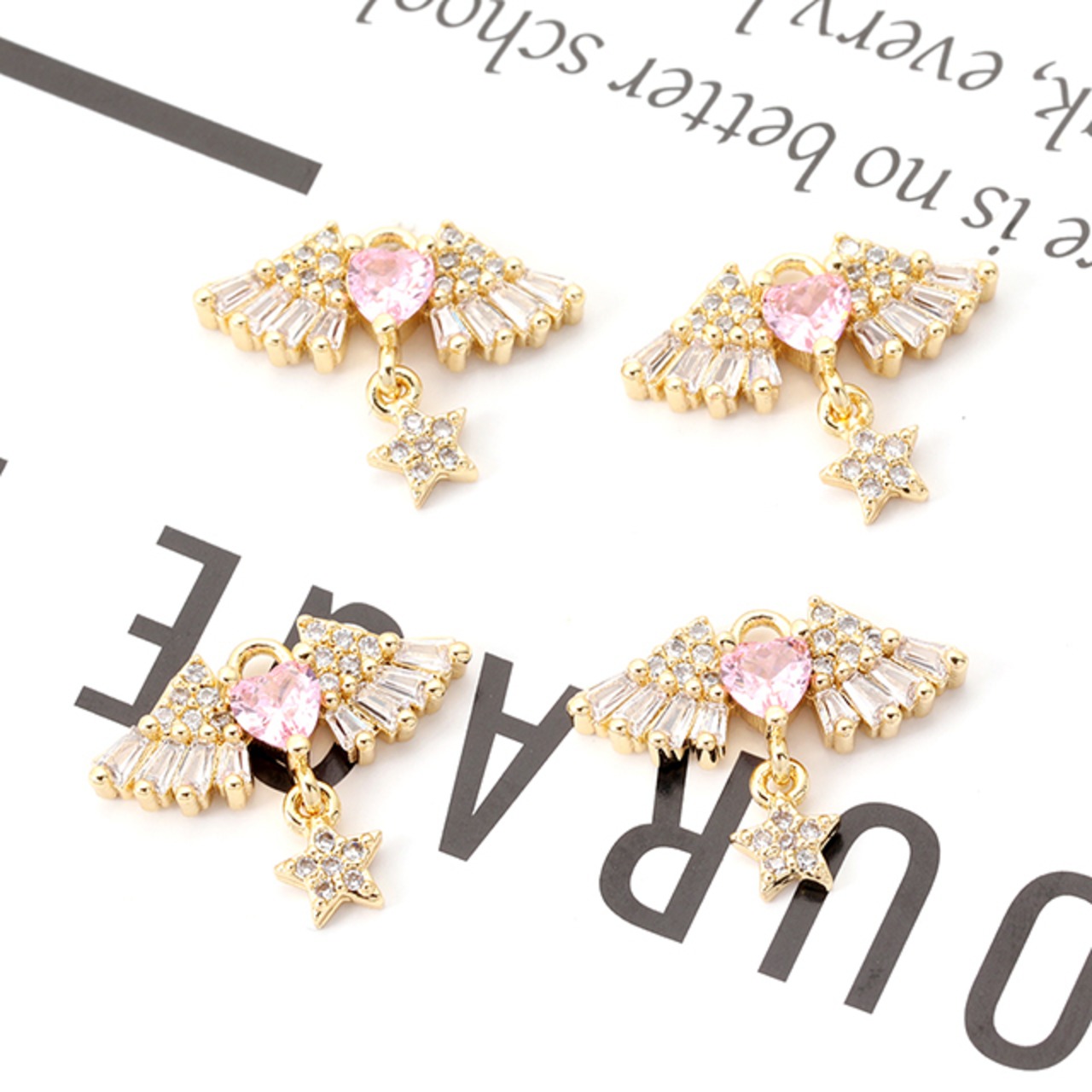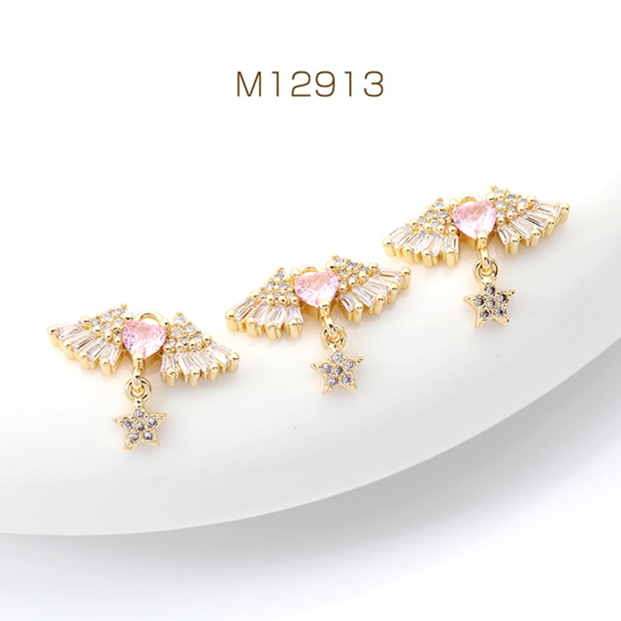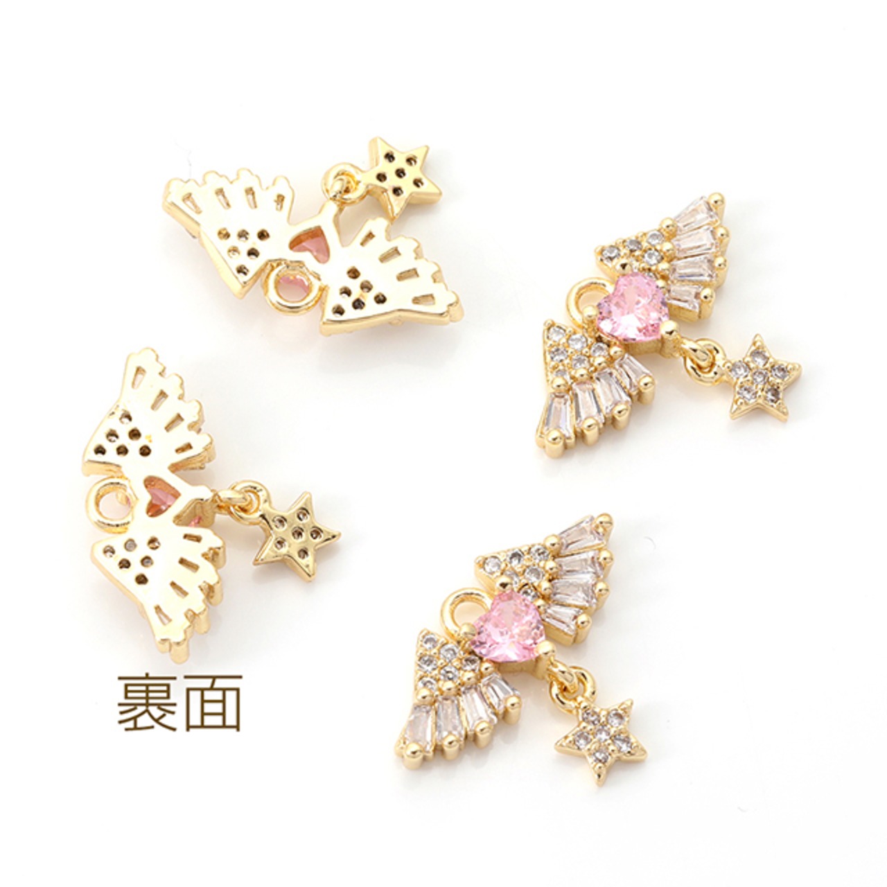 M12913 高品質ジルコニアチャーム 天使の羽とハート 星形付き ゴールド 14×18mm(1ヶ)