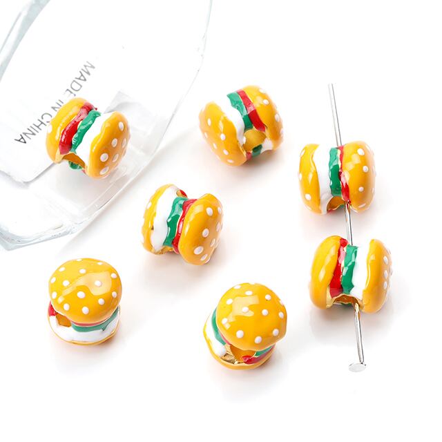 M12956 メタルビーズ 大穴ビーズ ハンバーガー エポ付き ゴールド 10×12mm(1ヶ) | Beads&parts BASE2号店