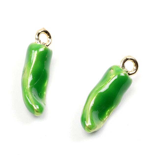 M13031 メタルエポチャーム 食べ物チャーム 野菜チャーム 青唐辛子チャーム 1カン付き ゴールド 5×17mm(2ヶ) | Beads&parts BASE2号店