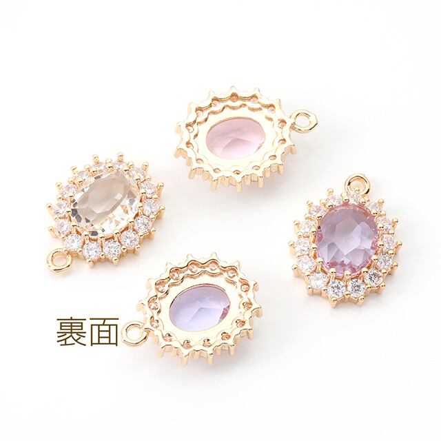 M13047 高品質フレームガラスチャーム ジルコニアストーンチャーム ガラスストーンチャーム オーバル 楕円形 1カン付き ゴールド 14×19mm(1ヶ) | Beads&parts BASE2号店