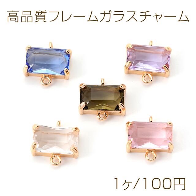M13051 高品質フレームガラスチャーム ガラスストーンチャーム コネクターチャーム 接続パーツ 連結パーツ 長方形型 2カン付き ゴールド 14×15mm(1ヶ) | Beads&parts BASE2号店
