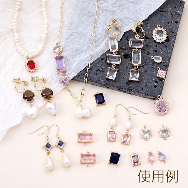 M13058 高品質フレームガラスチャーム ジルコニアストーンチャーム ガラスストーンチャーム コネクターチャーム 長方形型 2カン付き ゴールド 10×15mm(1ヶ) | Beads&parts BASE2号店