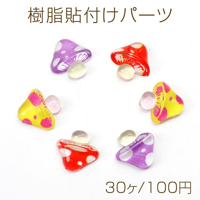 A5097 樹脂貼付けパーツ 樹脂カボション 樹脂デコパーツ キノコ きのこ 9×9mm(30ヶ) | Beads&parts BASE2号店