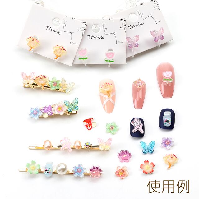 A5103 樹脂貼付けパーツ 樹脂カボション 樹脂デコパーツ ミックスカラー 蝶 バタフライ 蝶々 立体蝶 8×10mm(30ヶ)