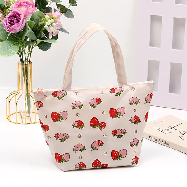 KW450 いちご柄トートバッグ フナガタトートバッグ いちごモチーフ 苺柄プリント デイリートートバッグ フナガタ 舟形トートバッグ 収納バッグ
