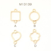 M13139 レジンフレームチャーム メタルコネクターチャーム スクエア型 ラウンド 円形 丸型 ハート型 フラワー 花 さくら 桜 上下2カン付き 2カン付き ゴールド | Beads&parts BASE2号店