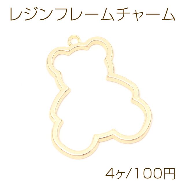 M13175 レジンフレームチャーム くま クマ ベア 1カン付き ゴールド 34×42mm(4ヶ) | Beads&parts BASE2号店