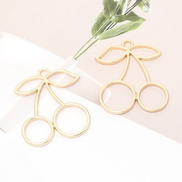 M13179 レジンフレームチャーム さくらんぼ チェリー 1カン付き ゴールド 27×32mm(4ヶ) | Beads&parts BASE2号店
