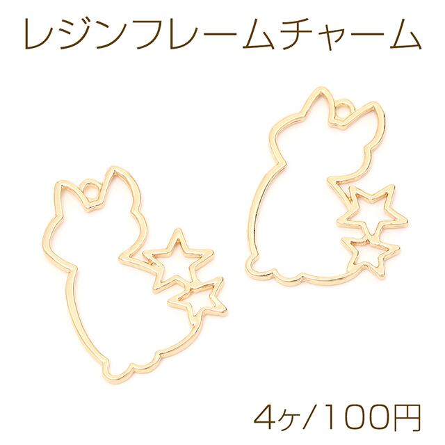 M13206 レジンフレームチャーム 猫 ネコ ねこ キャット ネコちゃん 1カン付き ゴールド 26×37mm(4ヶ) | Beads&parts BASE2号店
