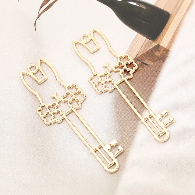 M13209 レジンフレームチャーム うさぎキー ウサギキー 兎型キー 1カン付き ゴールド 19×54mm(4ヶ) | Beads&parts BASE2号店