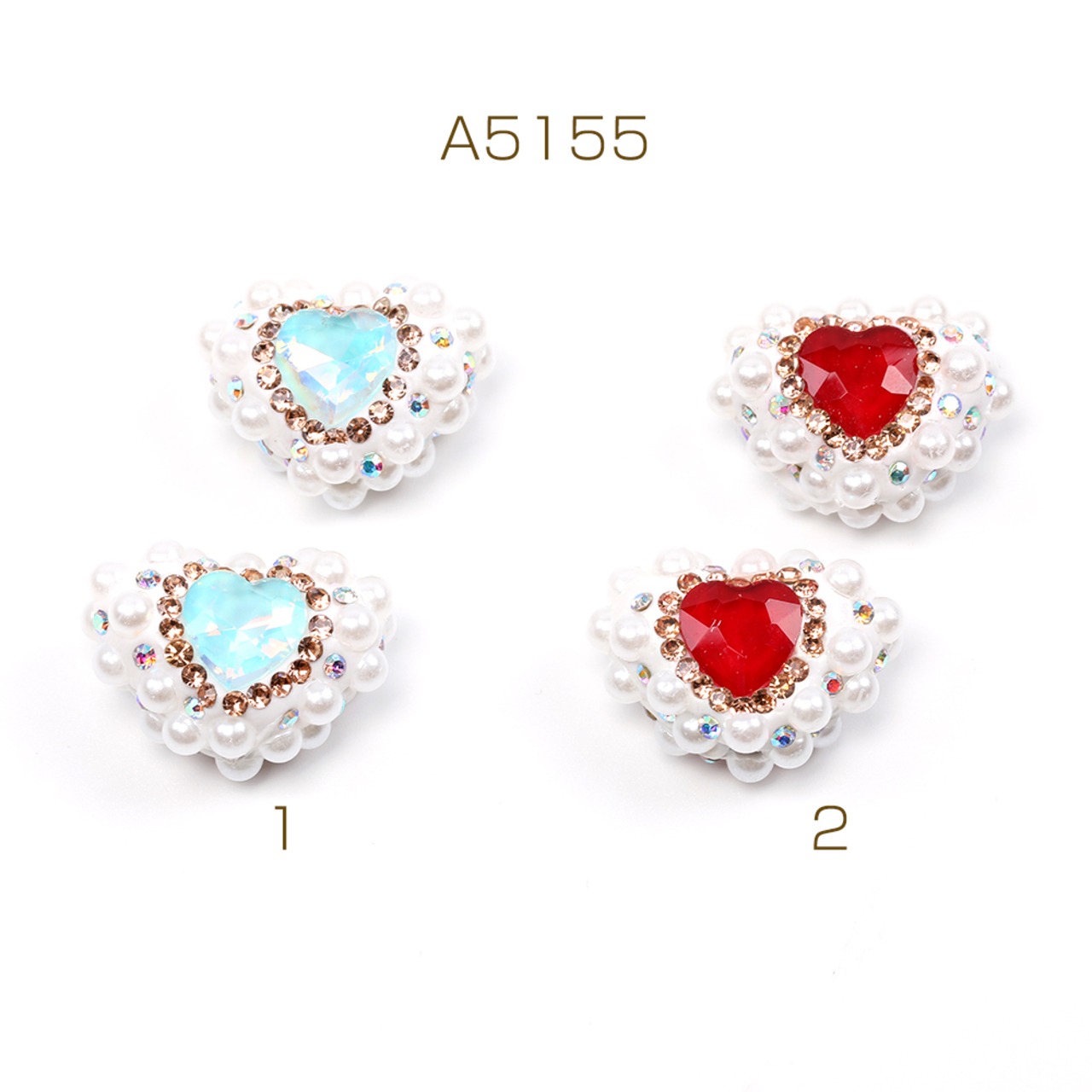 A5155 アクリルハートビーズ 手描きアクリルビーズ ハート型 通し穴あり 縦穴 パール装飾 ラインストーン装飾 パール付き ラインストーン付き 19×26mm
