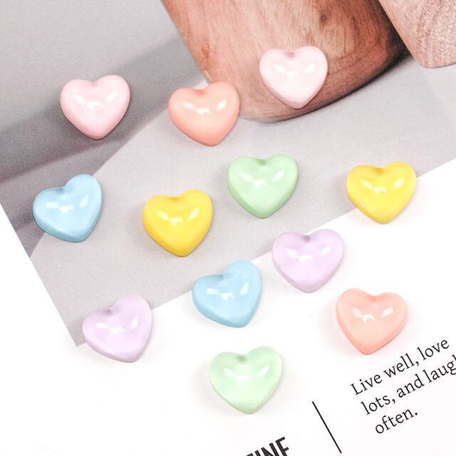 A5433 樹脂貼付けパーツ ハートデコパーツ ぷっくりハート樹脂カボション 半透明 約11×12mm(10ヶ) | Beads&parts BASE2号店