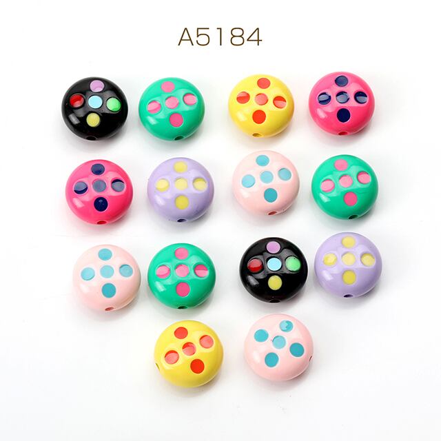 A5184 アクリルビーズ コイン型 ドット柄 オリジナルブレスレット ストラップ キーホルダー制作ビーズ ユニークビーズ 通し穴あり 縦穴 カラーアソート 17mm(4ヶ) | Beads&parts BASE2号店