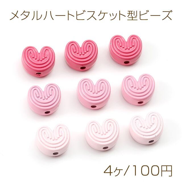 M13252 メタルハートビスケット型ビーズ ハートビスケットモチーフメタルビーズ 塗装 通し穴あり 8×10mm | Beads&parts BASE2号店
