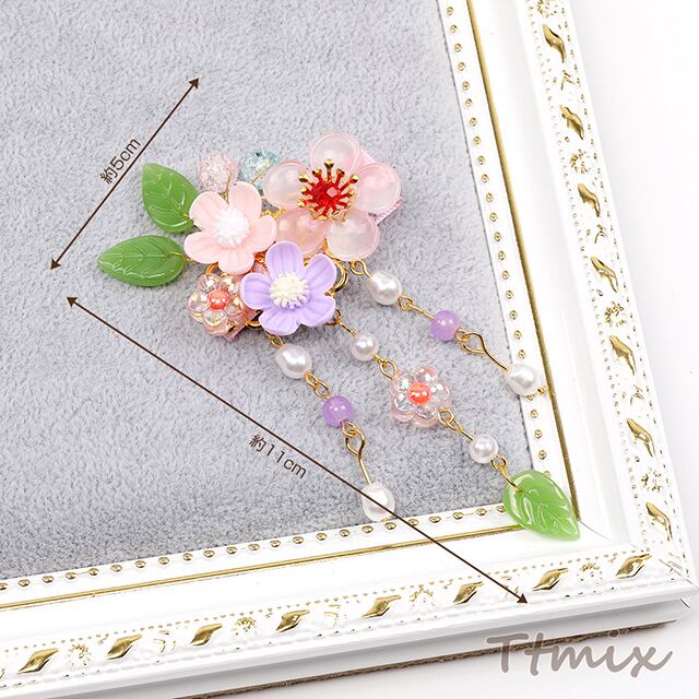 TH1365 フラワーモチーフヘアクリップ ヘアアクセサリー レディースヘアクリップ 髪飾り フラワー 花 タッセル(1ヶ) | Beads&parts BASE2号店