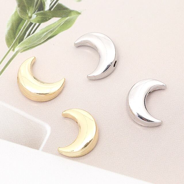 M13281 立体メタルビーズ 月モチーフ メタリックビーズ 通し穴あり 10×13mm(4ヶ) | Beads&parts BASE2号店