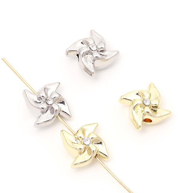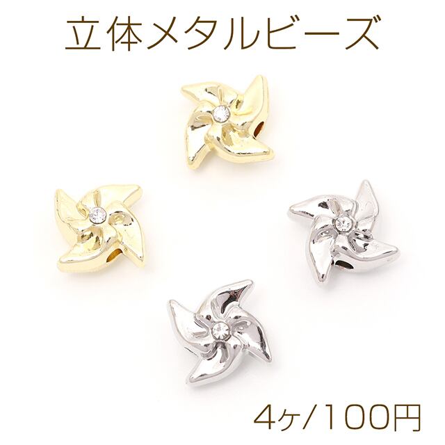 M13282 立体メタルビーズ 風車モチーフラインストーン付き メタリックビーズ 通し穴あり 9×9mm(4ヶ) | Beads&parts BASE2号店