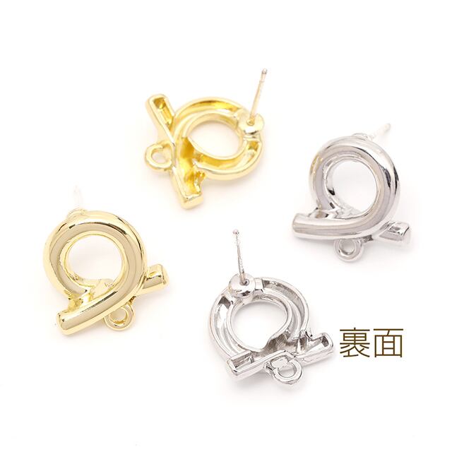 M13309 ピアス金具 デザインピアス カン付きシルバーポスト 合金 ゴールド 14×15mm (4ヶ) | Beads&parts BASE2号店