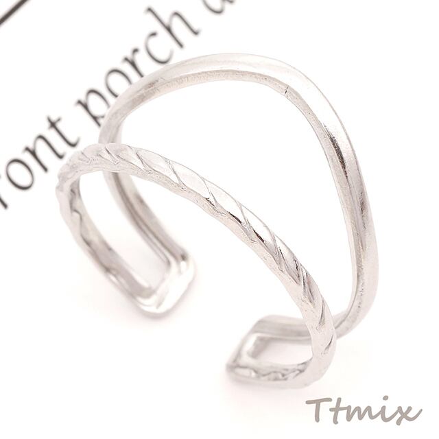 TR708 ステンレスリング 指輪 色落ちしにくい オープンリング ダブルラインモチーフ ファッションリング ステンレス製 内径約17.7mm 幅約11mm | Beads&parts BASE2号店