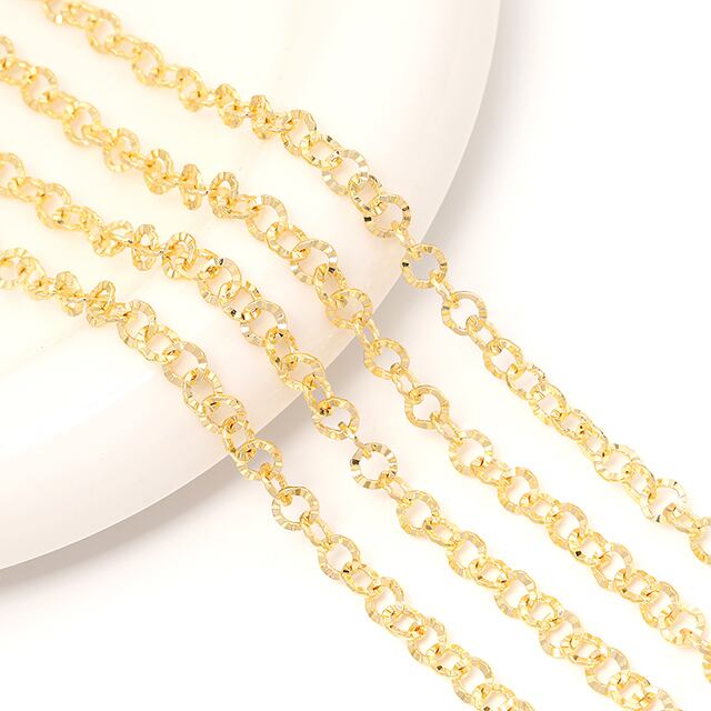 L883 メタルチェーン デザイン甲丸チェーン ネックレスチェーン アクセサリーチェーン 色落ちしにくい 銅製 18Kゴールドメッキ(長さ1m) | Beads&parts BASE2号店