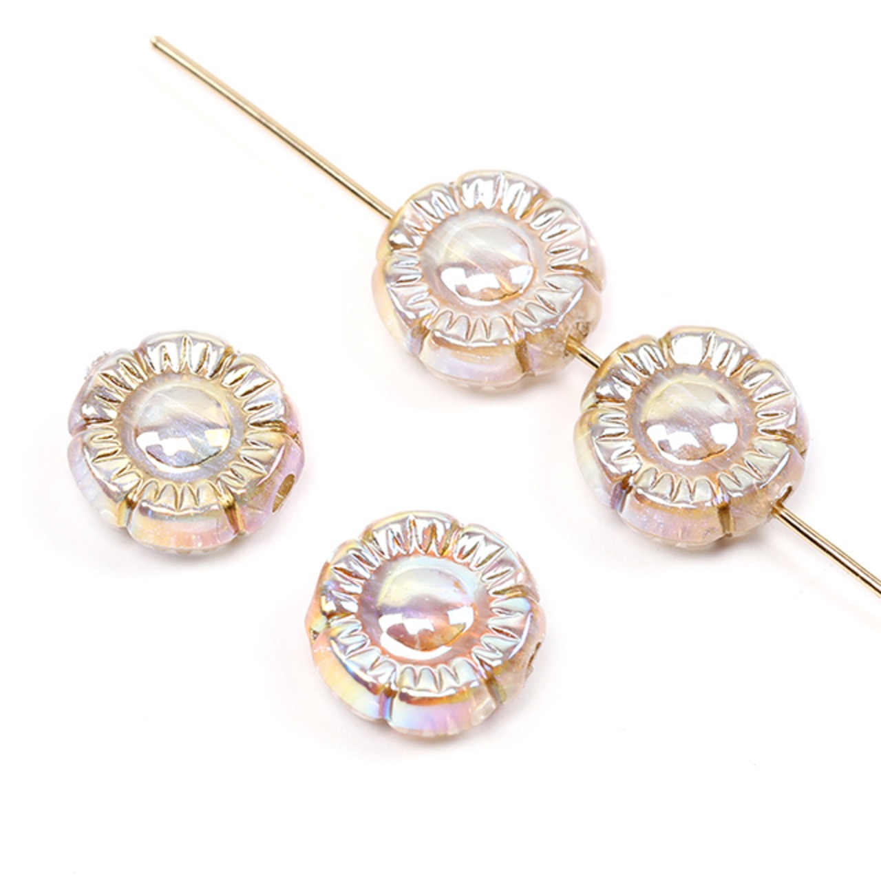 A5279 アクリルビーズ フラワー アンティーク調ビーズ 模様入り オーラル加工 コイン型 通し穴あり 10mm(4ヶ)