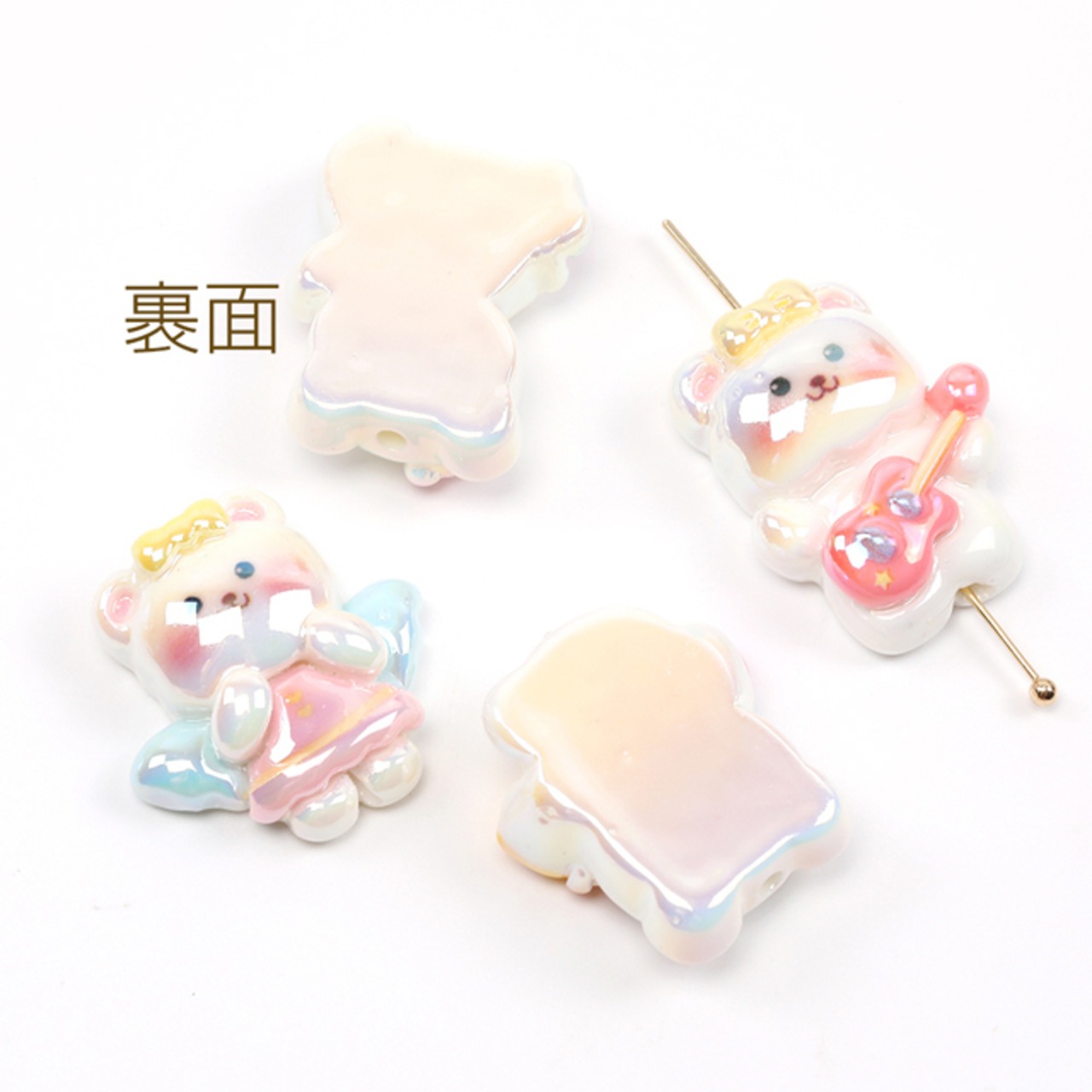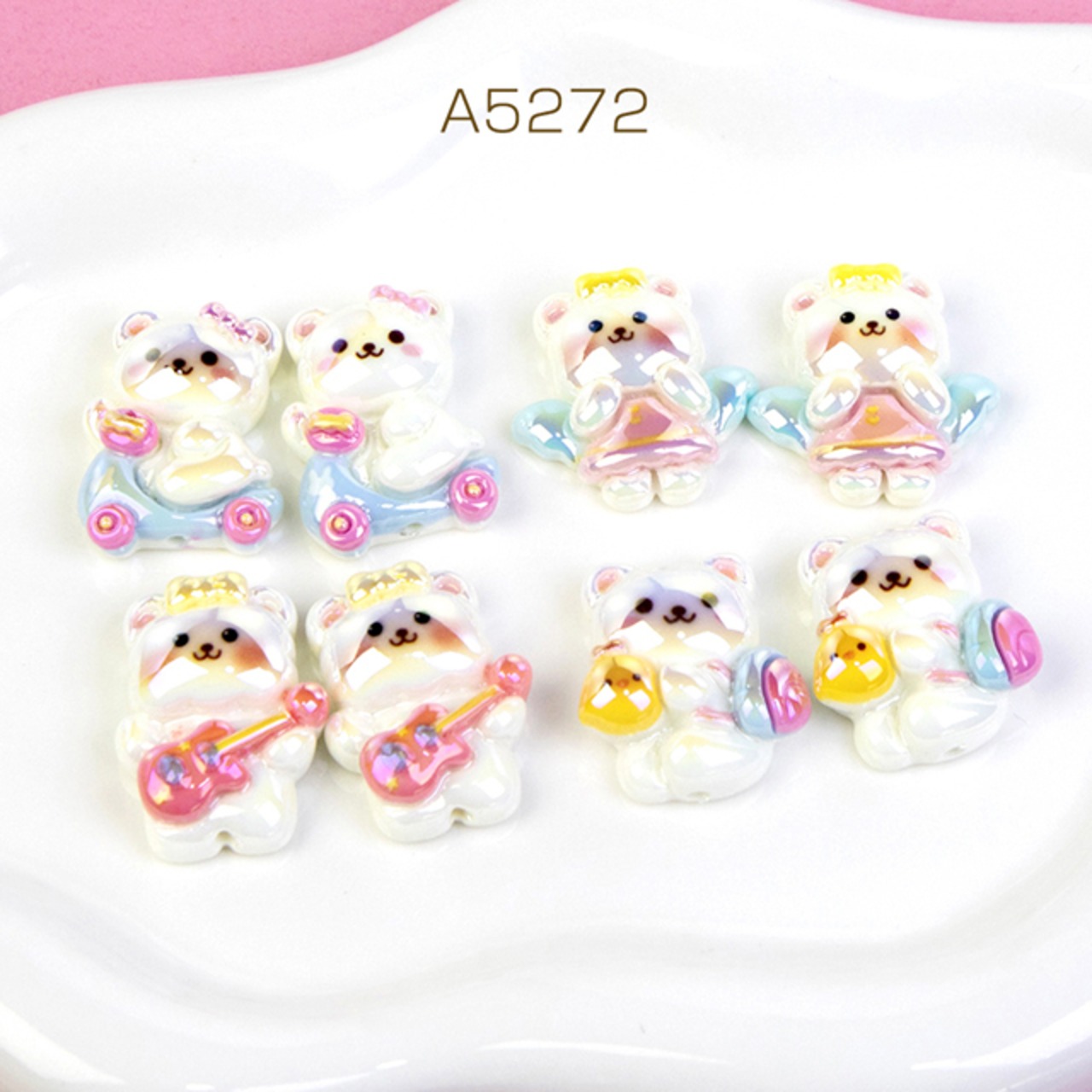 A5272 樹脂動物ビーズ シロクマ ビーズ貼付け両用 通し穴あり アソート(4ヶ)