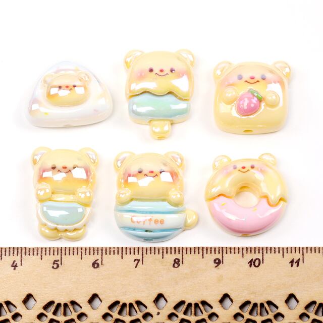 A5274 樹脂動物ビーズ クマ ビーズ貼付け両用 通し穴あり アソート(4ヶ)
