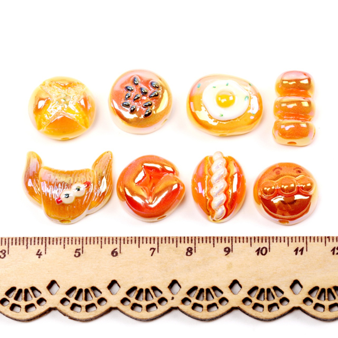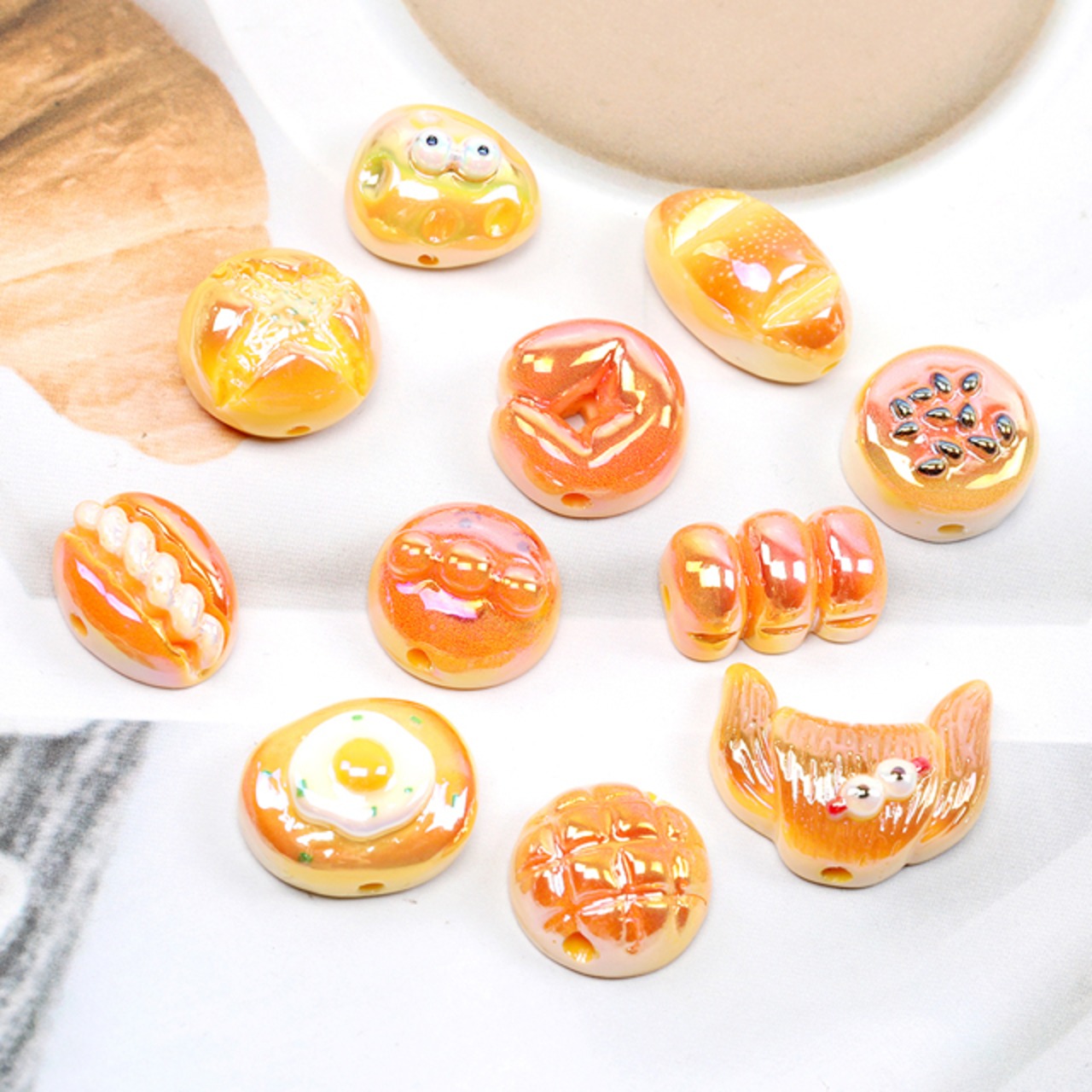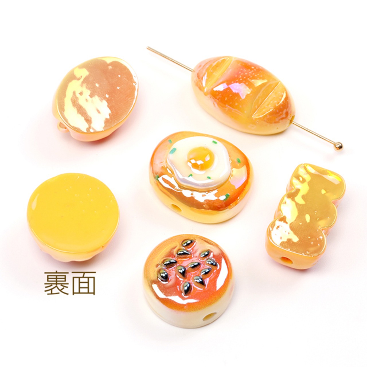 A5276 樹脂食べ物ビーズ パン ビーズ貼付け両用 通し穴あり アソート(4ヶ)