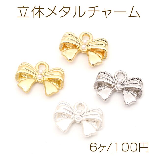 M13367 立体メタルチャーム リボンモチーフ リボンチャーム パール付き 1カン付き 9×12mm(6ヶ) | Beads&parts BASE2号店