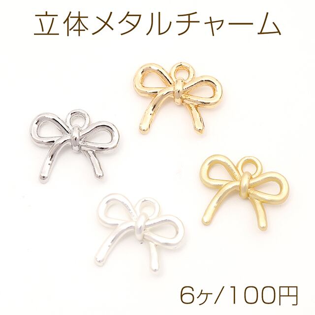 M13371 立体メタルチャーム リボンモチーフ リボンチャーム 1カン付き 10×11mm(6ヶ) | Beads&parts BASE2号店