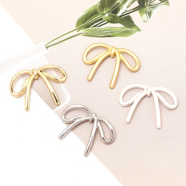 M13373 メタルリボンパーツ 立体 リボンチャーム ネックレストペンダントトップ リボン型ジョイントパーツ ポニーフック用リボンパーツ 貼付け可 14×20mm(6ヶ) | Beads&parts BASE2号店