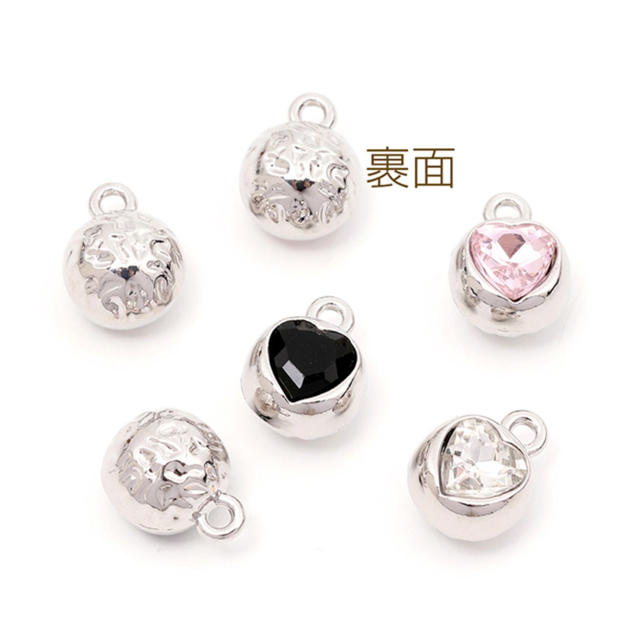 M13416 ガラスハートチャーム 合金製ボール台座 ガラスハート 立体ボール ハートモチーフ 1カン付き 約9×11mm(2ヶ) | Beads&parts BASE2号店