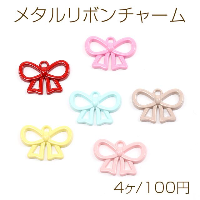 M13418 メタルリボンチャーム 合金製 塗装加工 リボンモチーフ リボンパーツ デザインリボンチャーム 1カン付き 11×16mm(4ヶ) | Beads&parts BASE2号店