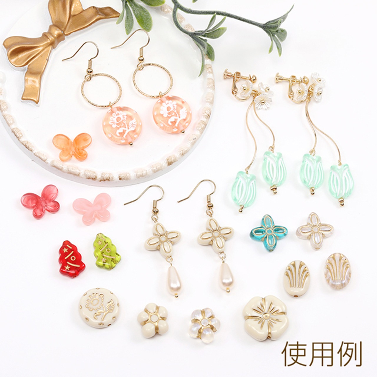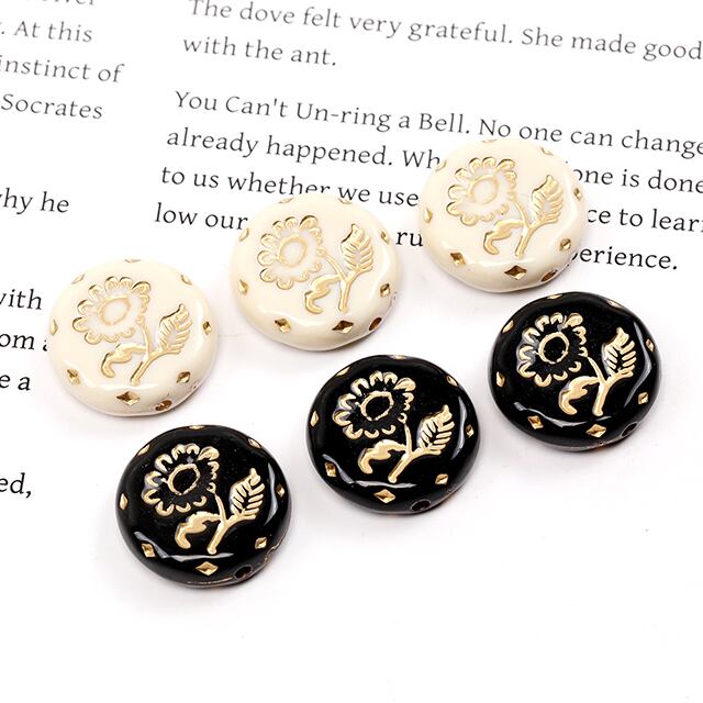 A5320 アクリルビーズ コイン型 フラワー模様入り アンティーク調ビーズ 縦穴 約18mm(20ヶ) | Beads&parts BASE2号店