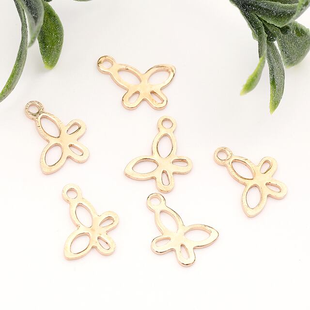 M13485 メタル蝶チャーム 金属蝶チャーム 蝶型フレーム バタフライ 蝶モチーフ 鉄製 1カン付き ゴールド 約8×11mm(20ヶ) | Beads&parts BASE2号店