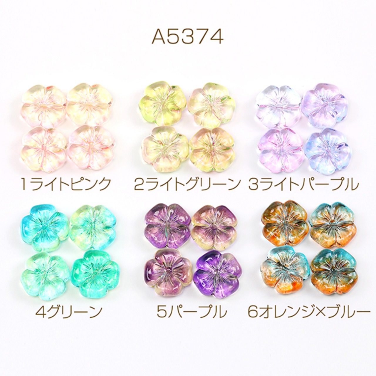 A5374 アクリルビーズ フラワービーズ 通し穴あり グラデーションカラー 約20mm(20ヶ)